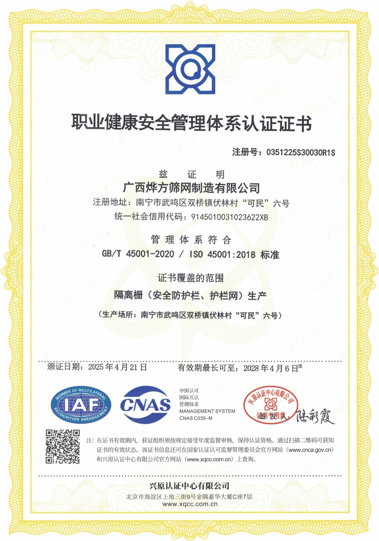 111 廣西燁方篩網制造有限公司-職業健康安全管理體系認證!